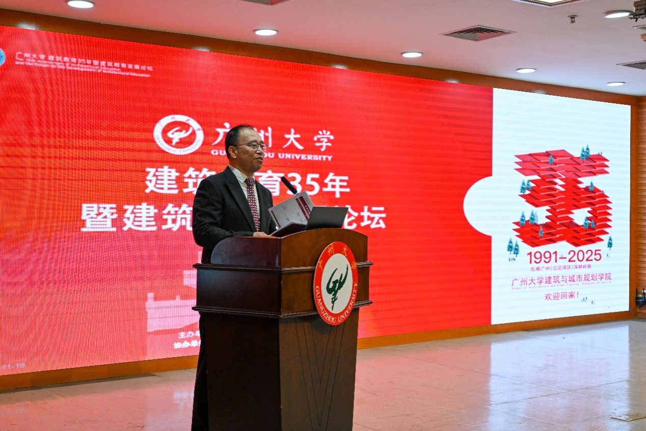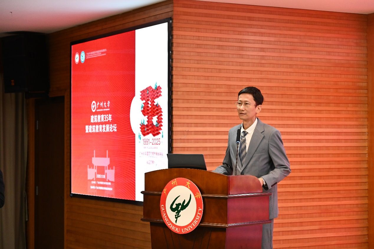 华南理工大学建筑麻豆视频 副院长苏平教授代表兄弟院校送上了最诚挚的祝福。他说道:“华工与广大地缘相近、人缘相亲、学缘相通。35年来,广大建院取得了令人钦佩的成就,这凝聚了几代建筑人的智慧与心血。”