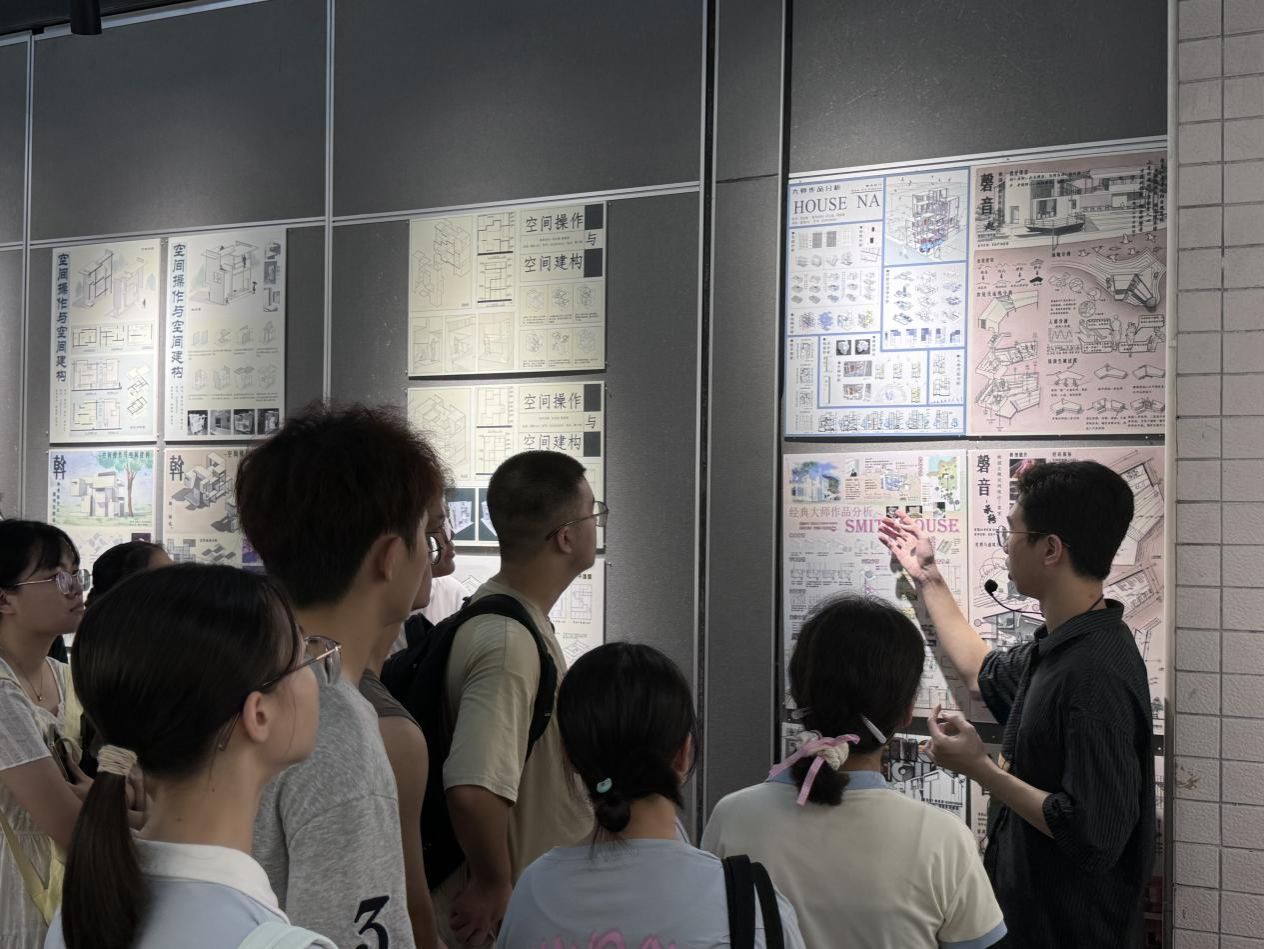 在理科北楼建筑麻豆视频 的一楼展厅中,展示了麻豆视频 非遗·灰塑工艺研学成果、岭南建筑文化与村社建筑模型作品以及近三年的学生优秀作品。新生在学长的带领下依次参观了大一至大四的图纸和模型,了解了建筑麻豆视频 由浅入深的学习过程。在参观灰塑和模型作品的过程中,学长为同学们讲解了传统工艺的精湛技艺,传递了古代匠人的智慧和匠心,大家认真聆听,对传统工艺产生了强烈的兴趣。